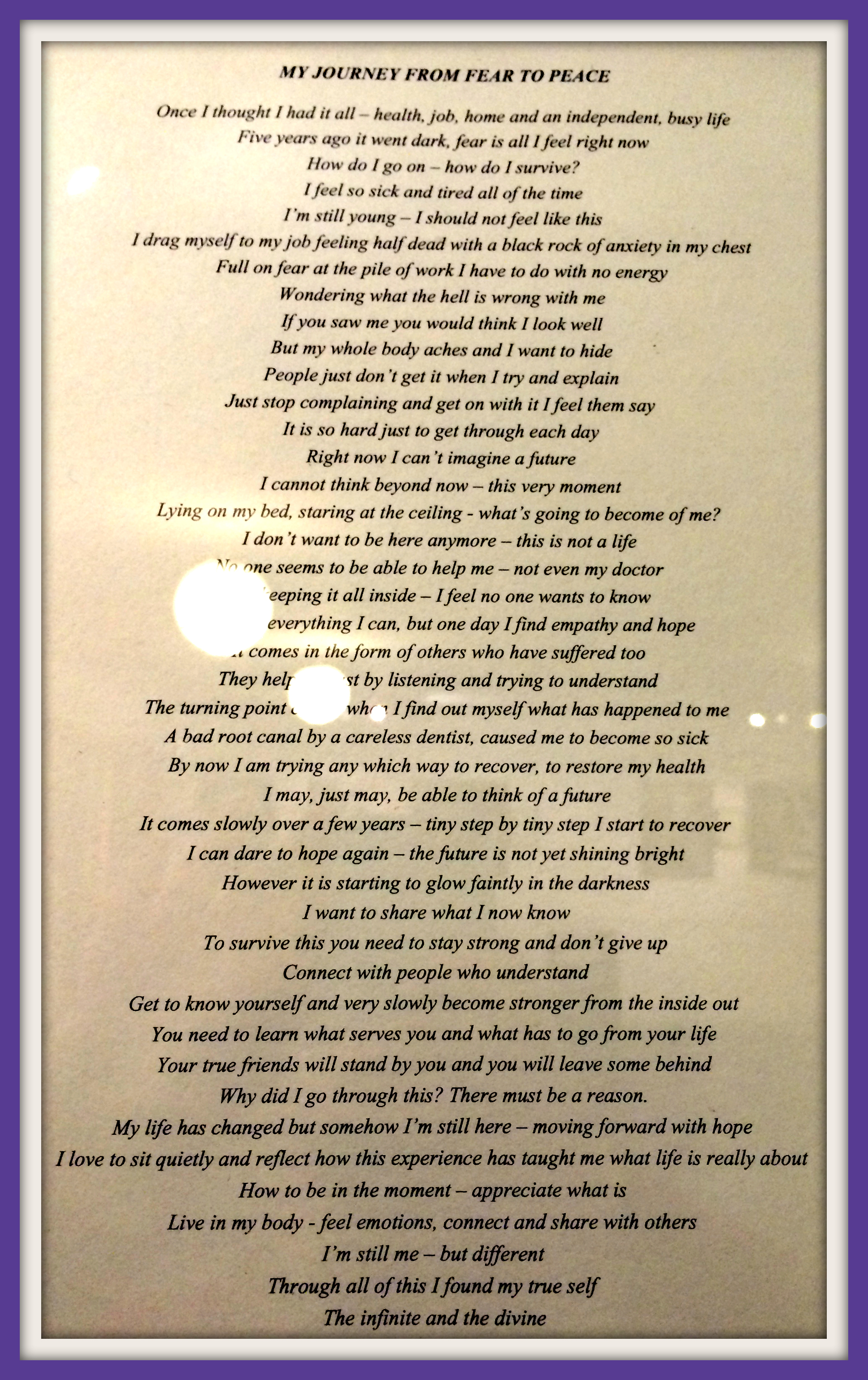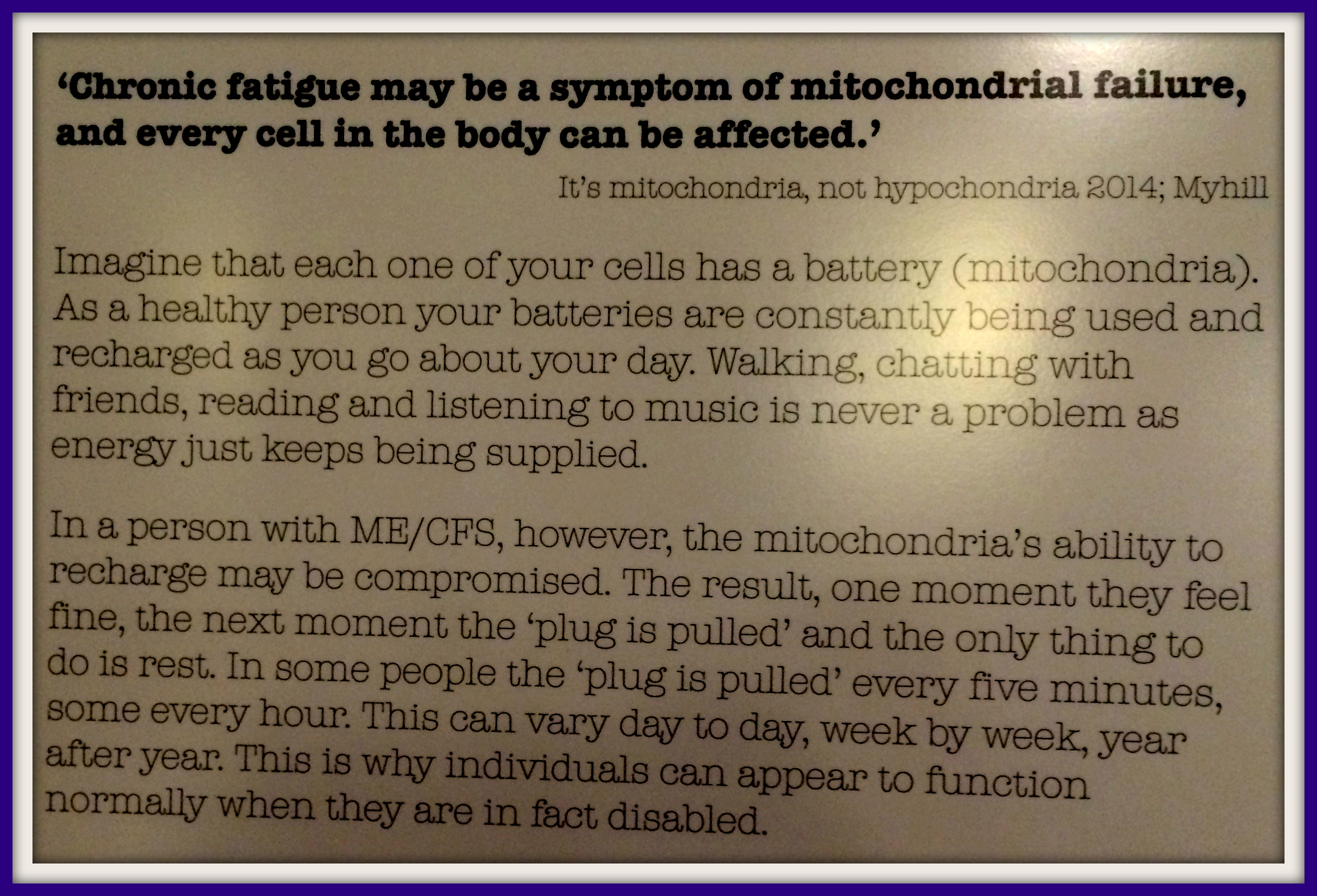 Earlier this week I went to an exhibition at Hamilton House in Bristol, with the emphasis on changing the perception of disability in particular that of the perception of ME/CFS.