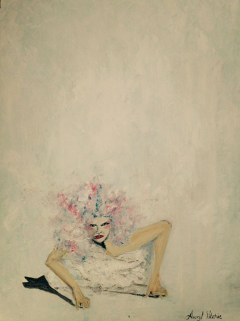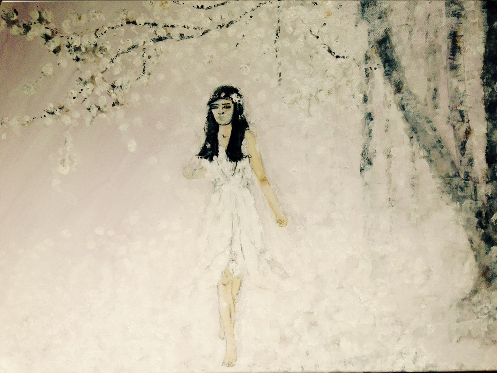 This painting is unfinished. Averyl wished to keep it that way since she doesn’t ever want to lose the feeling of contentment. It is a very simple piece, as is her life now she has rid myself of unnecessary complications and living in her own little world of happiness.